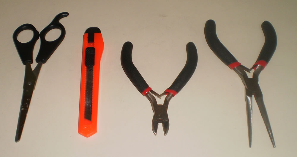 4 - Tesoura, estilete e alicates para cortar presilhas ou abraçadeiras plásticas. O alicate de bico é útil para encaixar conectores e pequenos jumpers.