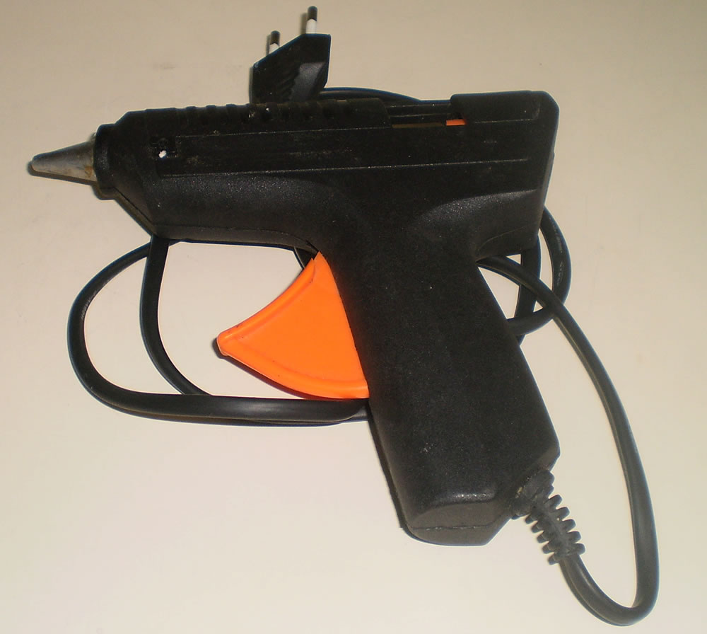 9 - Pistola de cola quente para colar peças plásticas quando rompidas ou abertas para consertos (fonte de notebook por exemplo).
